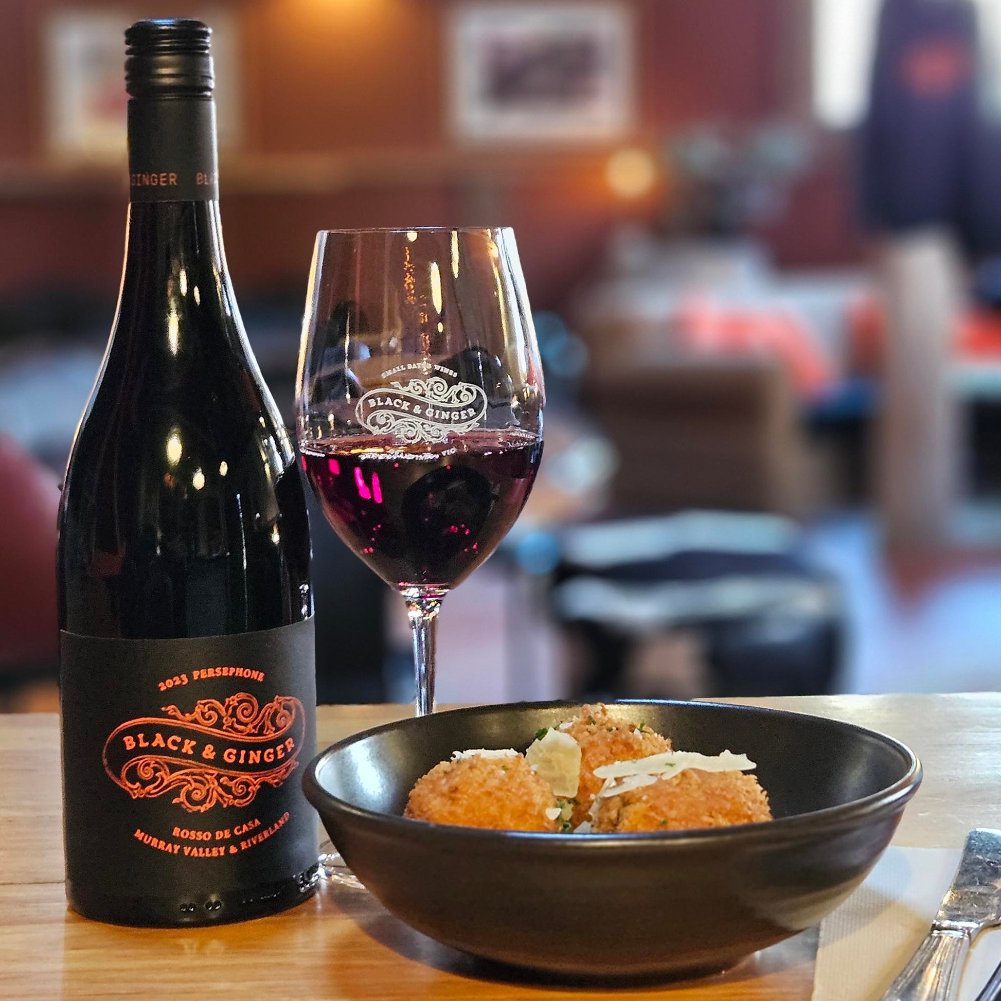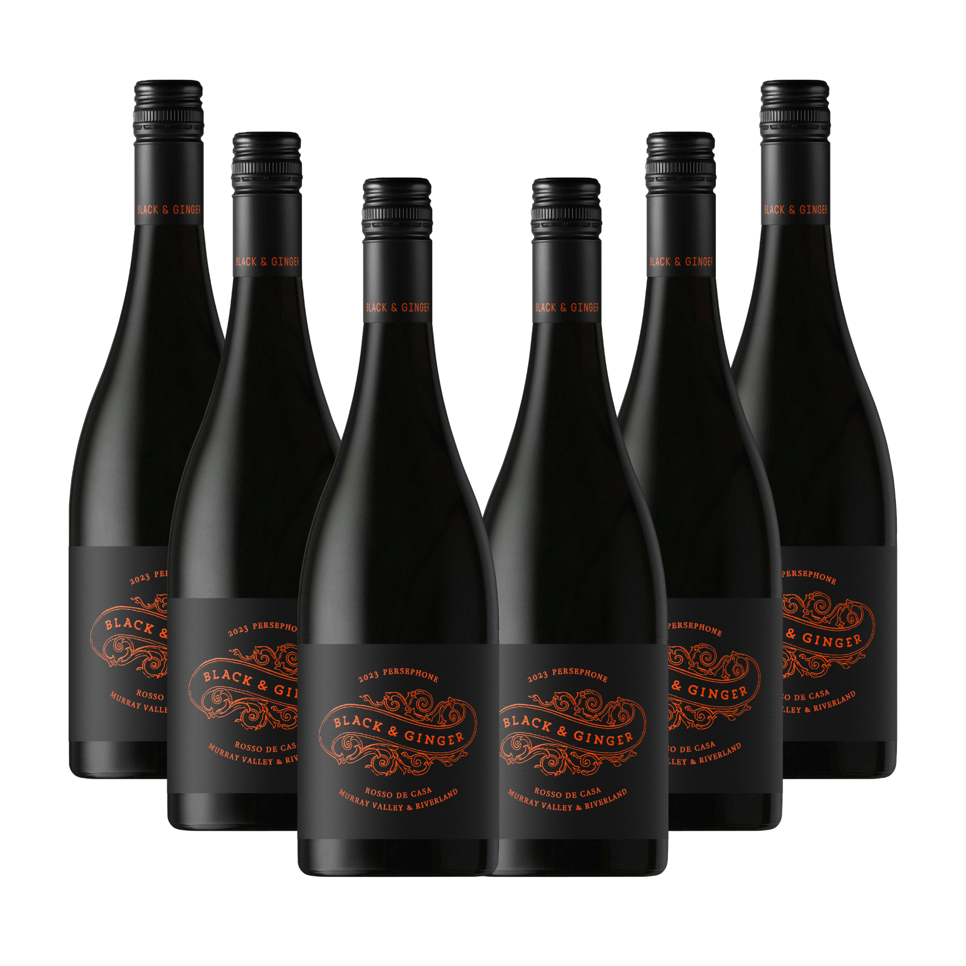 Persephone, Black & Ginger's House Red, now available in a special offer on a half dozen. Crafted with a blend of Italian varietals Nero D'Avola, Aglianico, and Nero di Troia sourced from the Riverland and Murray Valley regions, this Rosso de Casa offers a taste of Italy with notes of dark fruit and spice.